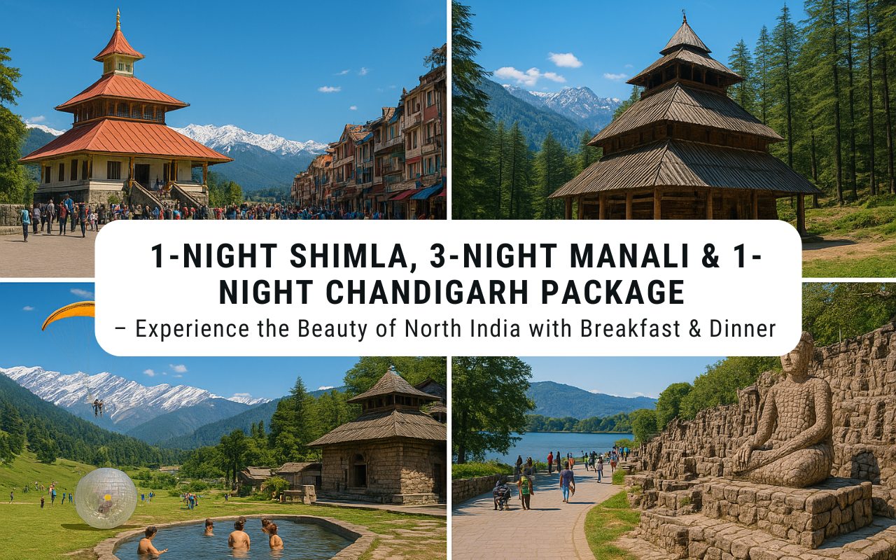 1-night Shimla, 3-night Manali, and 1-night Chandigarh package with breakfast and dinner: