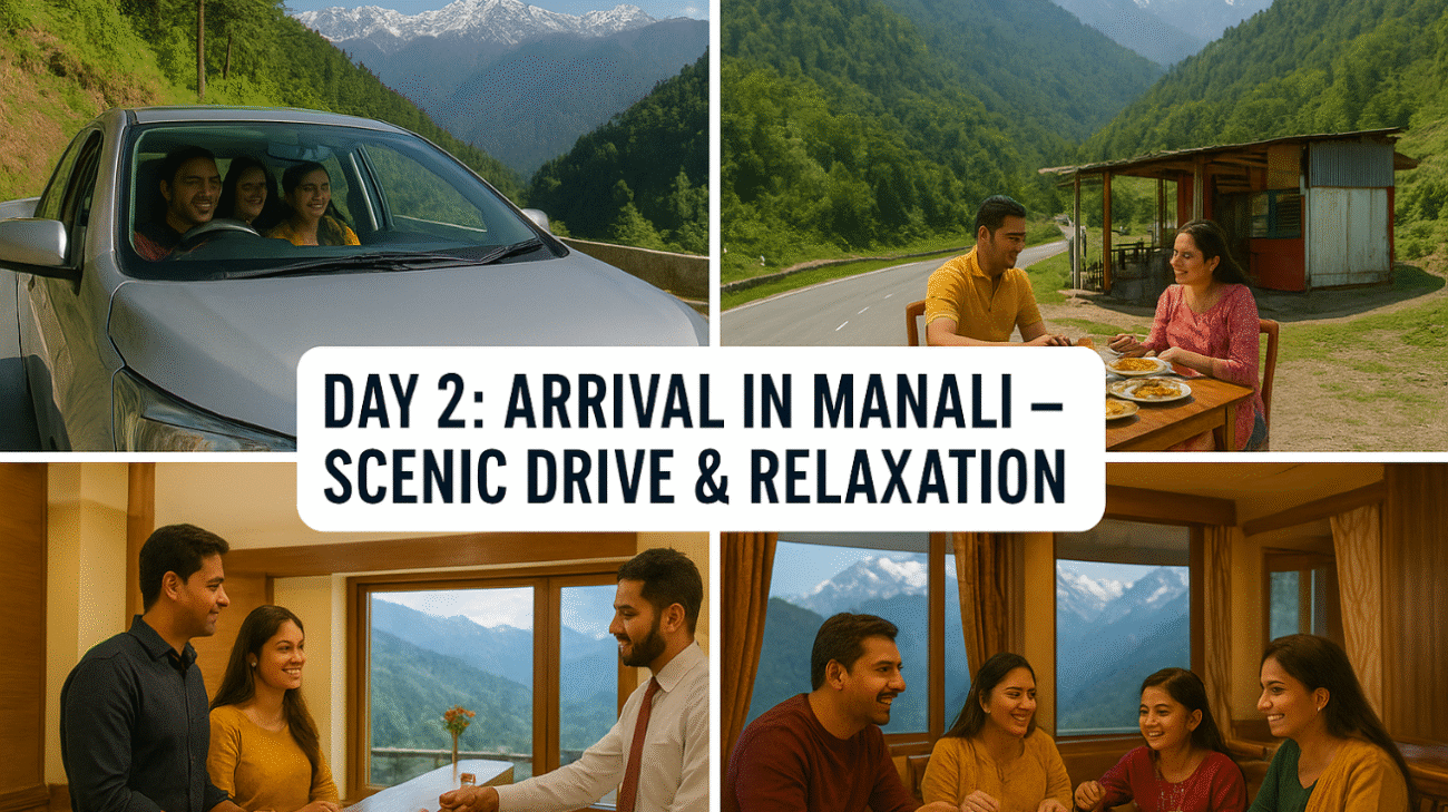 - Morning: Drive to Manali (approx. 7-8 hours journey).