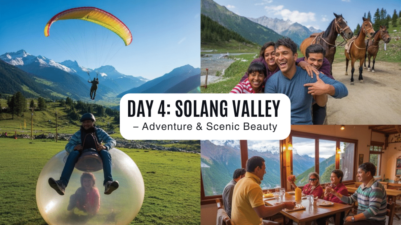 - Morning: Drive to Solang Valley, a picturesque valley with breathtaking views of snow-capped mountains.