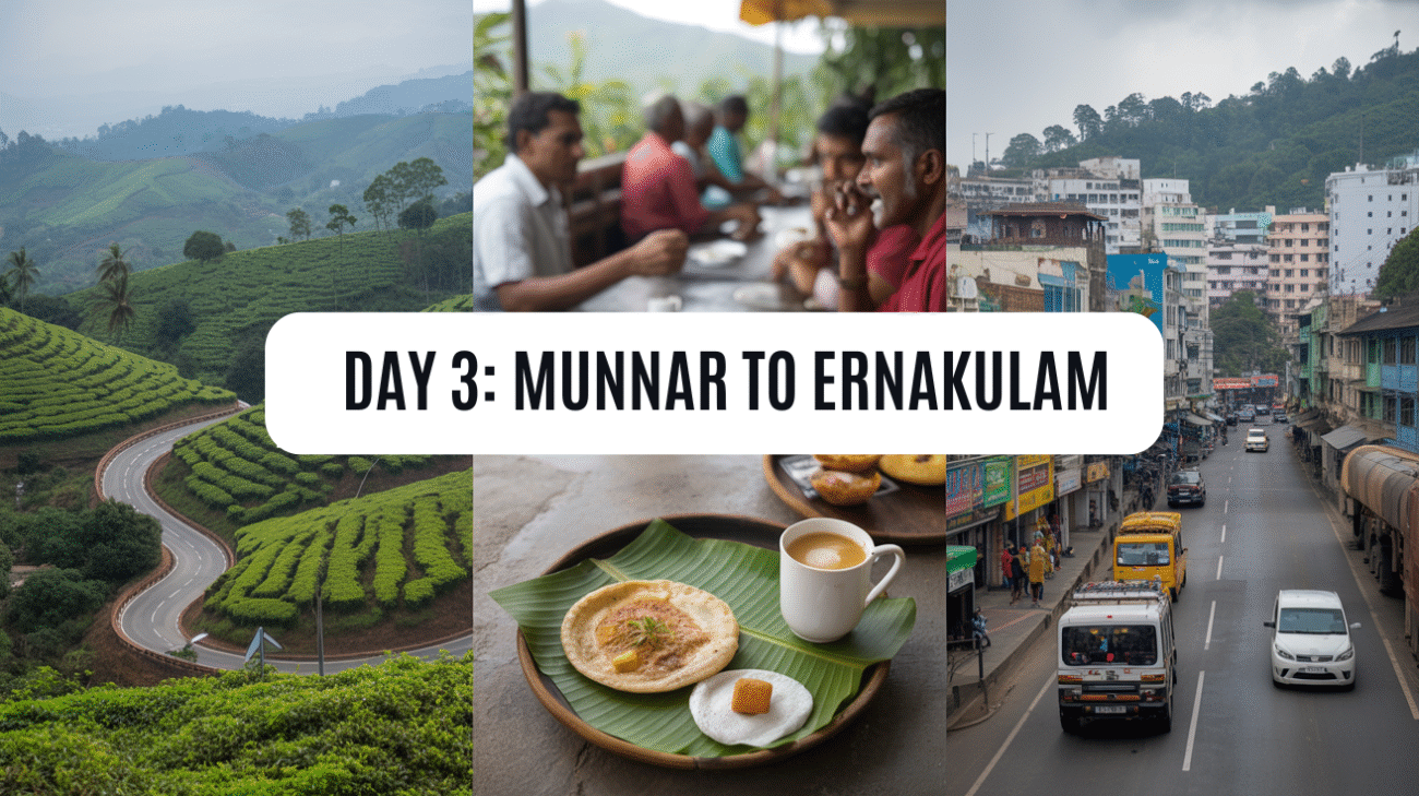 - Morning: Drive from Ernakulam to Munnar (approx. 4-5 hours journey).