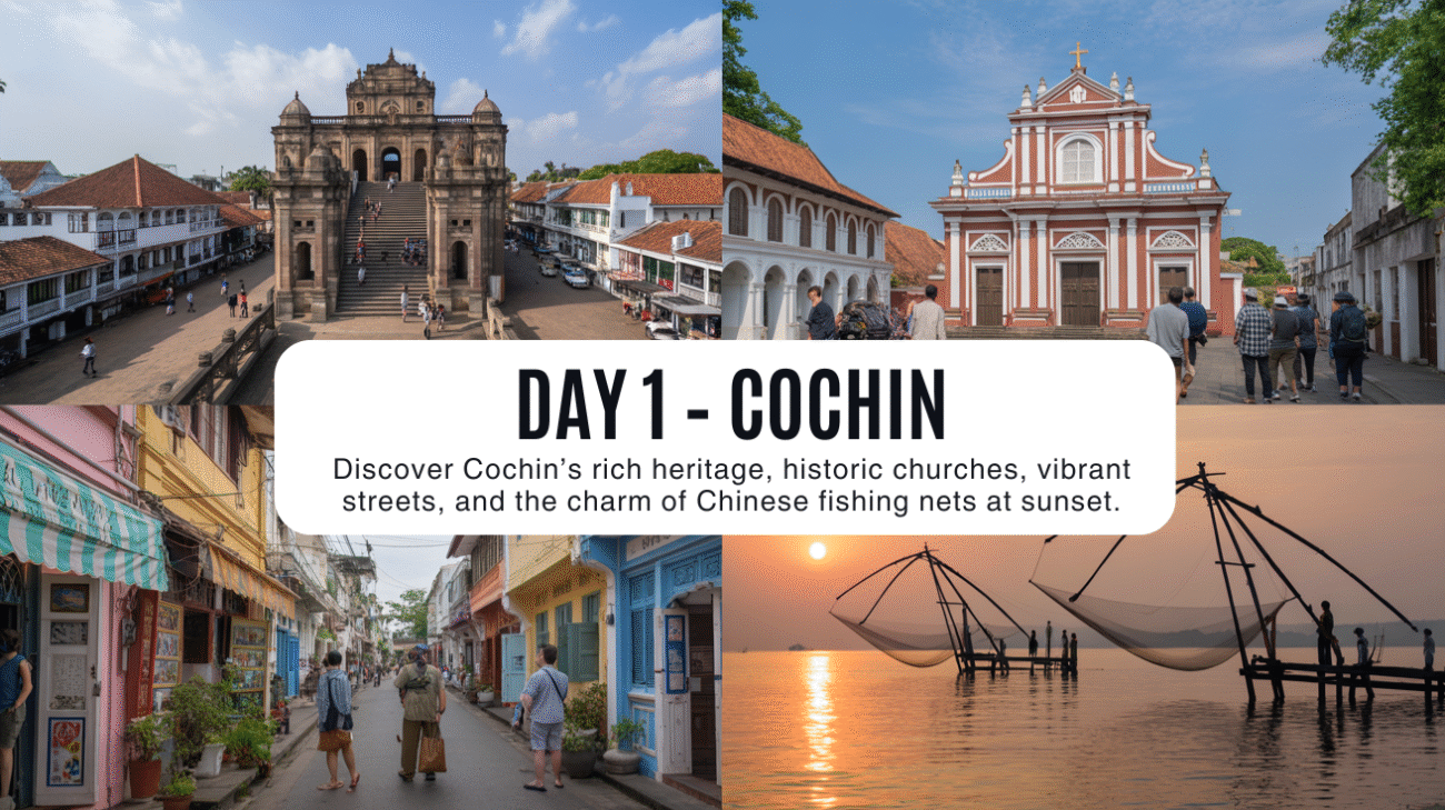 - Morning: Arrive in Cochin and check-in to your hotel.