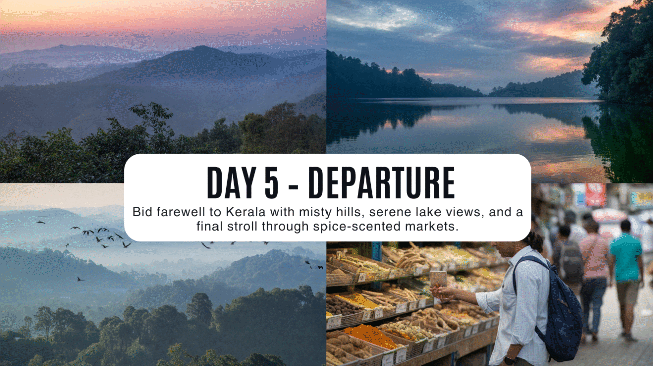 - Departure: Check-out from the hotel and depart from Thekkady.