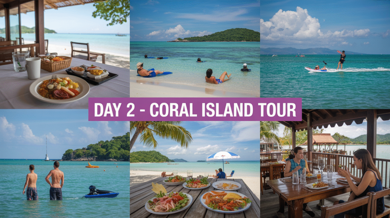 - Coral Island Tour: Visit the beautiful island and enjoy: