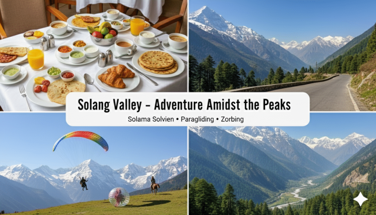 - Morning: Drive to Solang Valley, a picturesque valley with breathtaking views of snow-capped mountains.