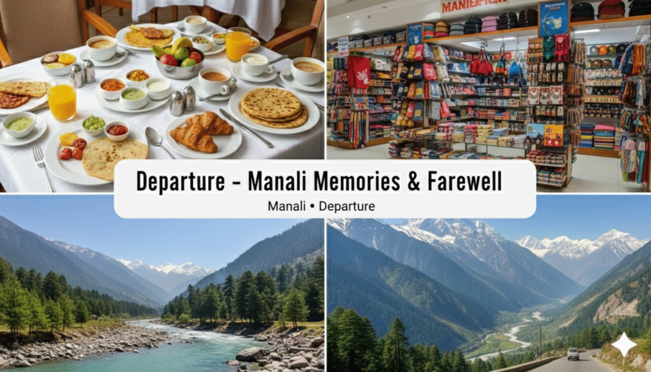 - Departure: Check-out from the hotel and depart from Manali.