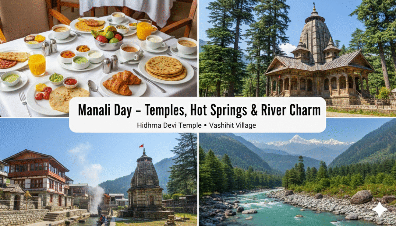 - Morning: Visit the Hidimba Devi Temple, a ancient cave temple dedicated to Hidimba Devi, wife of Bhima.