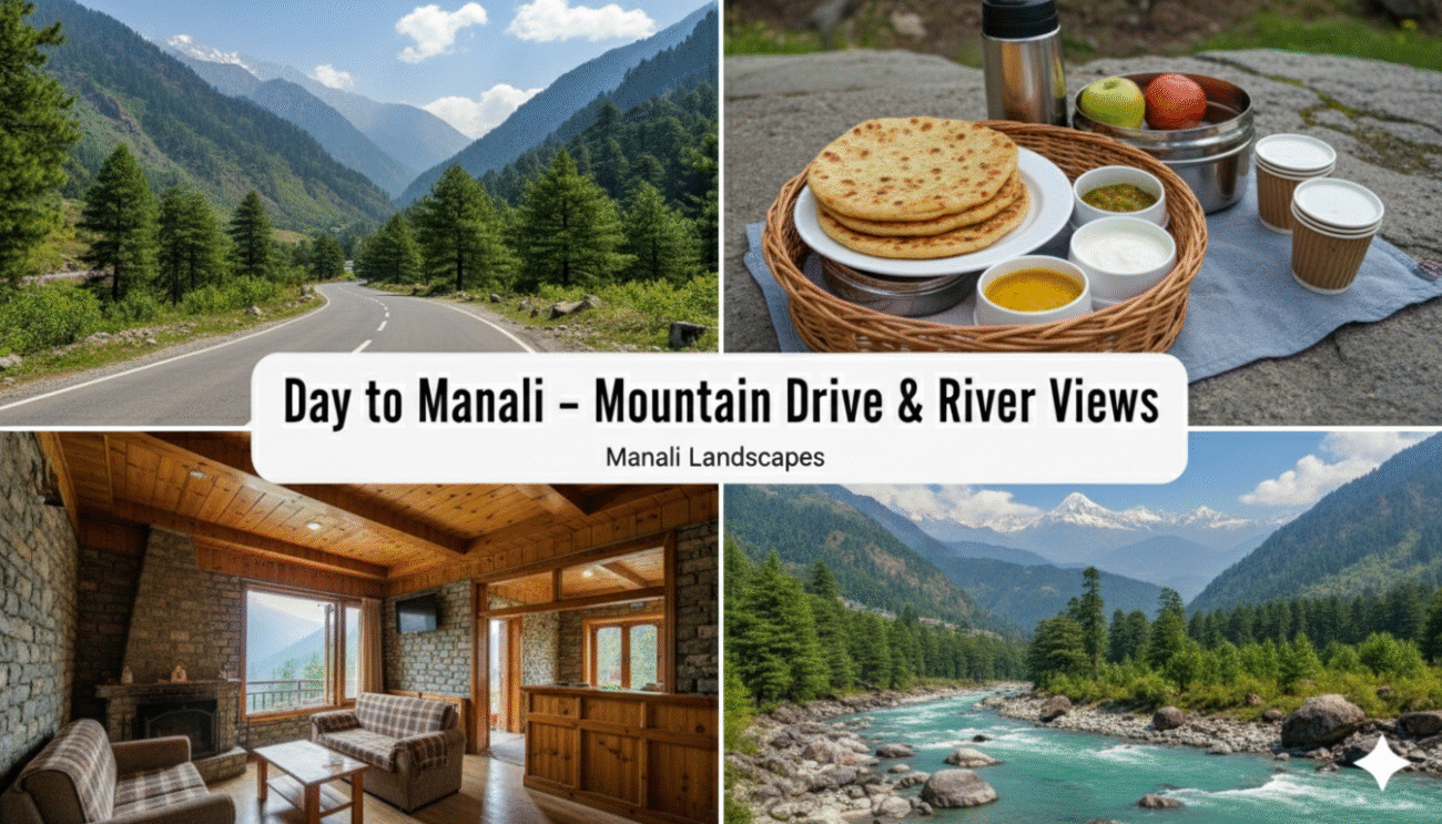 - Morning: Drive to Manali (approx. 7-8 hours journey).