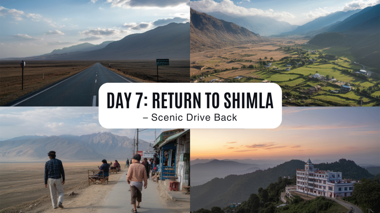- Morning: Drive back to Shimla (approx. 10-12 hours journey).