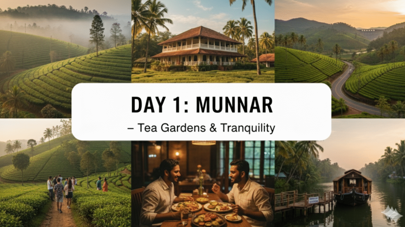 - Morning: Arrive in Munnar and check-in to your hotel.