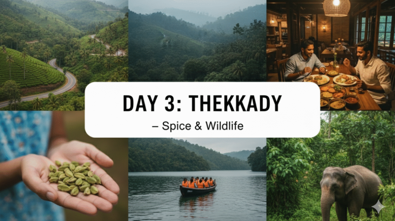- Morning: Drive from Munnar to Thekkady (approx. 2-3 hours journey).