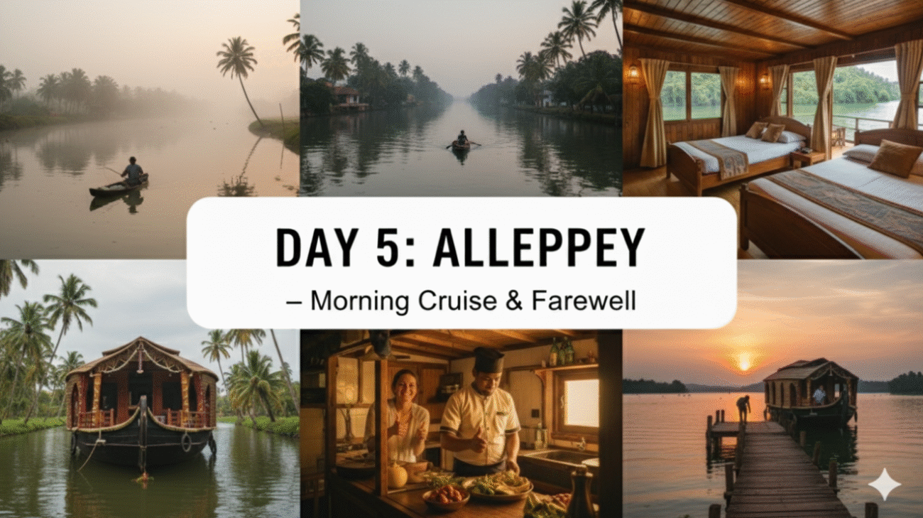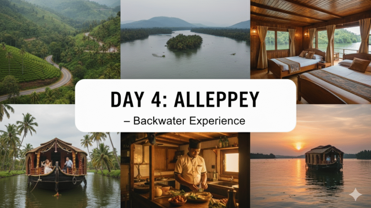 - Morning: Drive from Thekkady to Alleppey (approx. 3-4 hours journey).