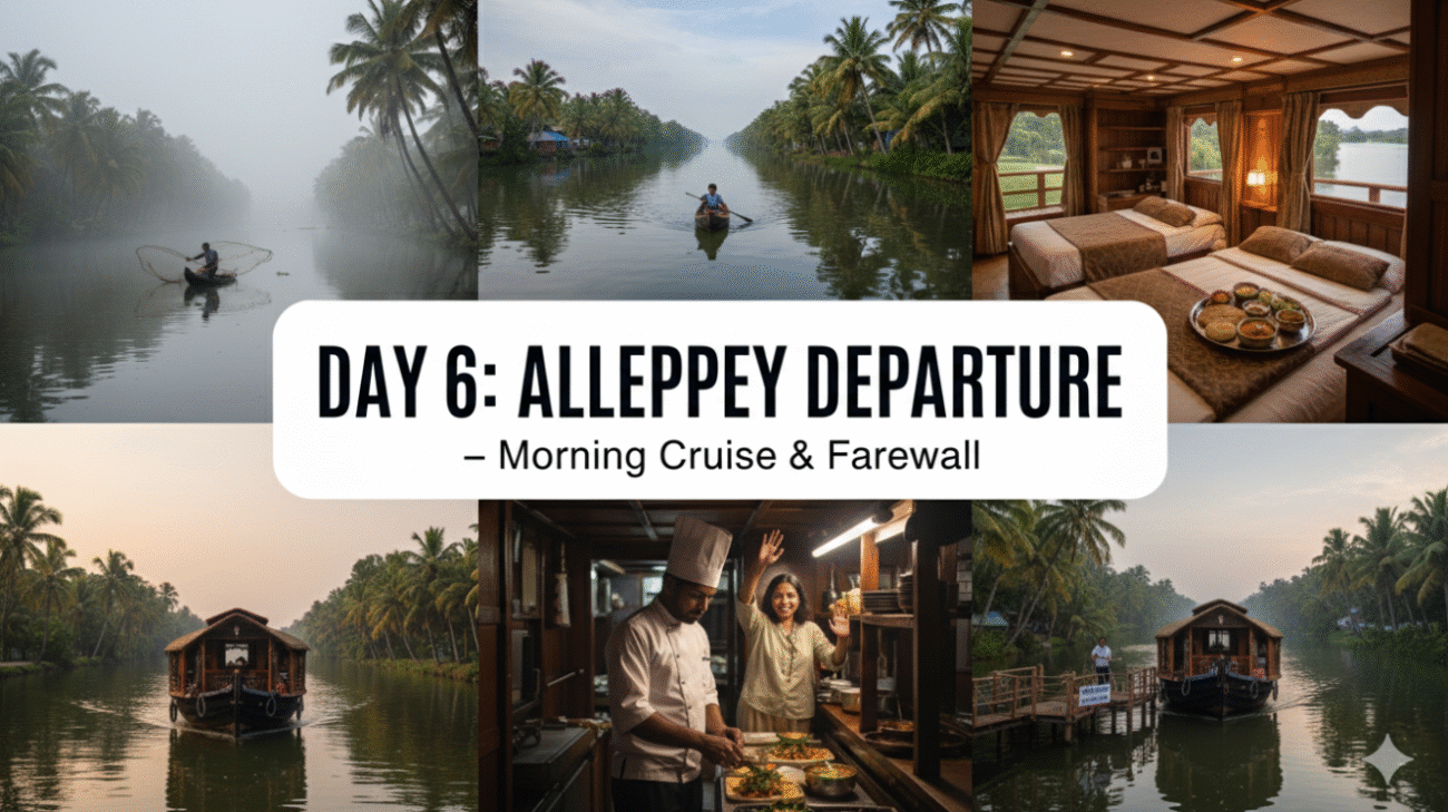 - Morning: Enjoy the scenic views of the backwaters and the local village.