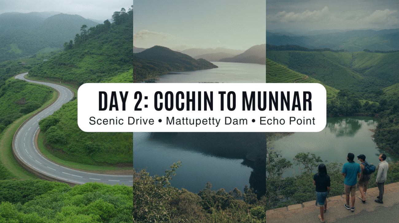 - Morning: Drive from Cochin to Munnar (approx. 4-5 hours journey).