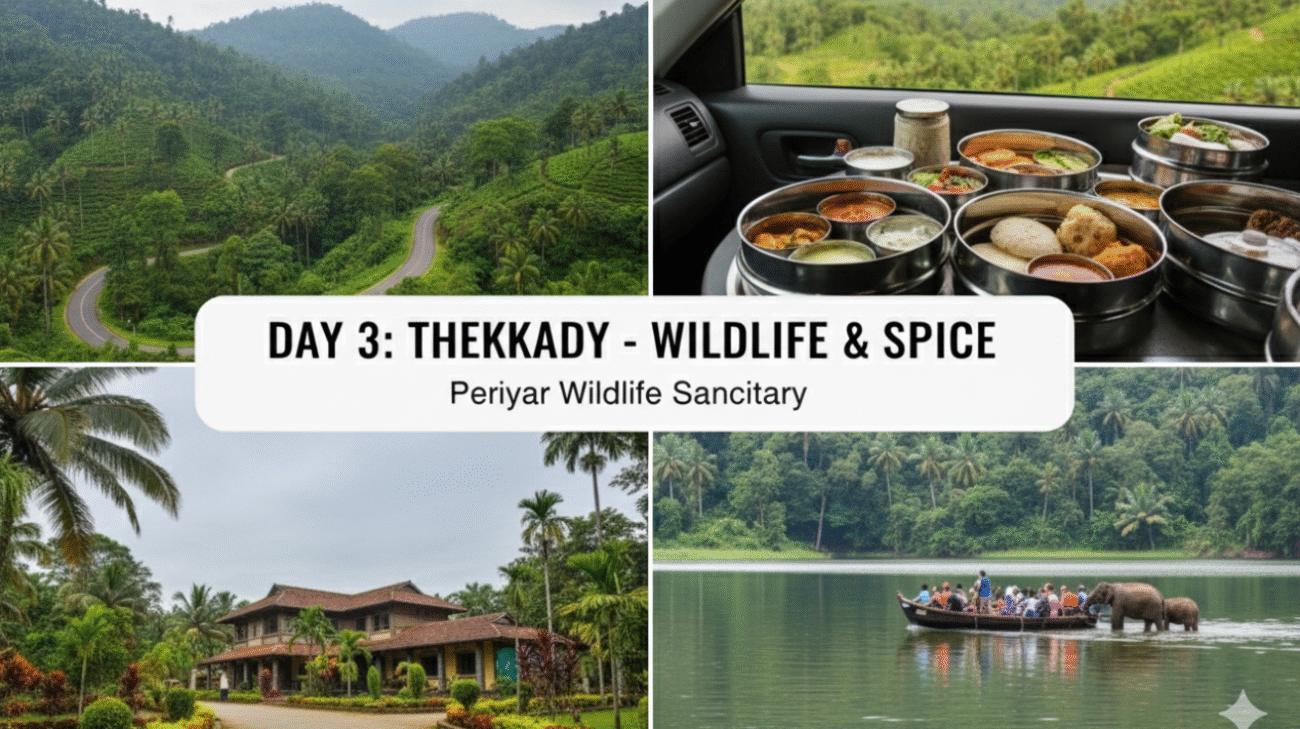 - Morning: Drive from Munnar to Thekkady (approx. 2-3 hours journey).