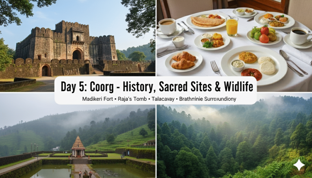 - Morning: Visit the Madikeri Fort and the Raja's Tomb.