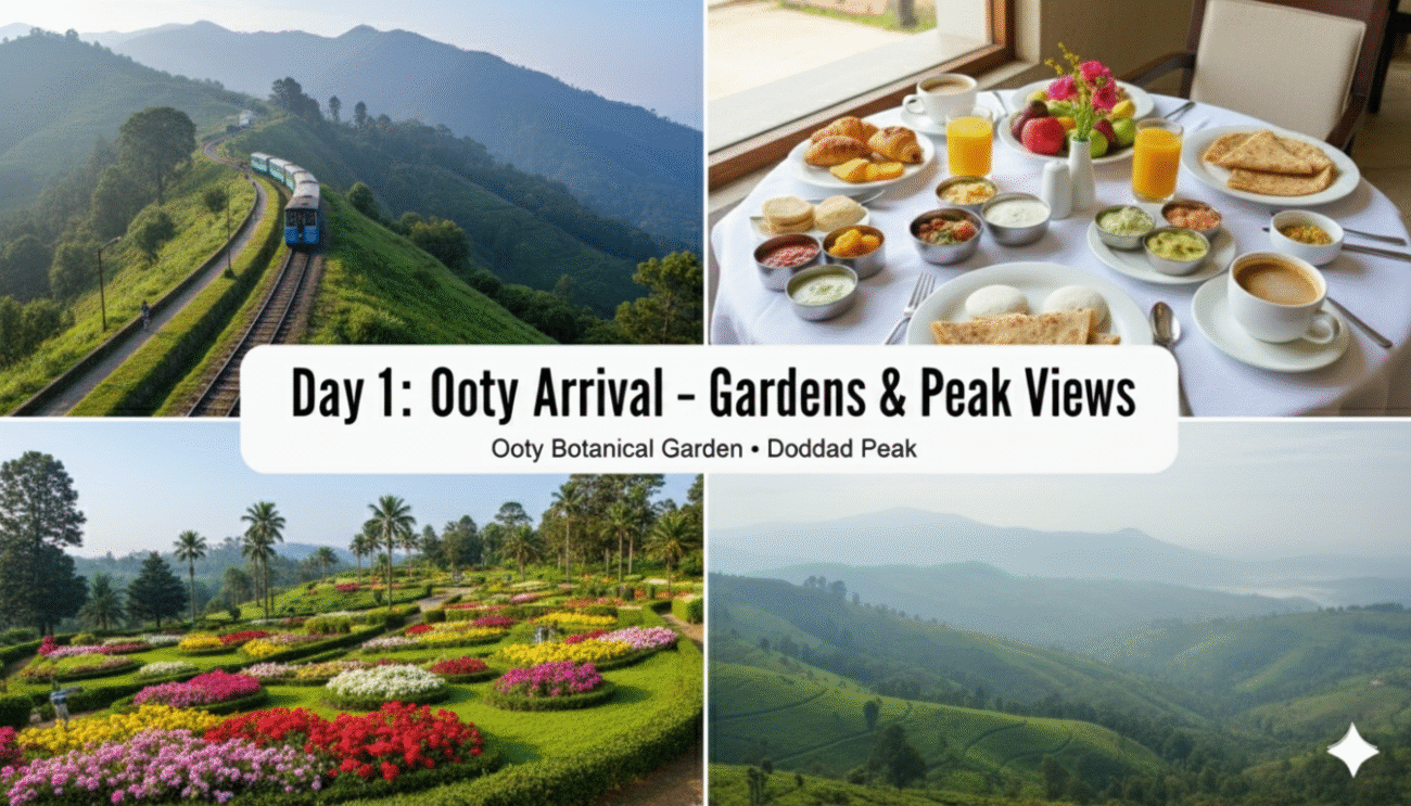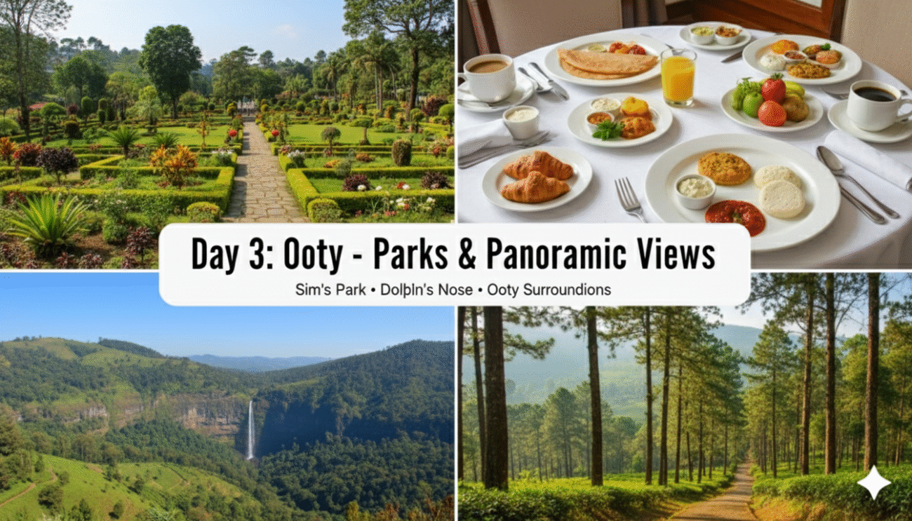 - Sightseeing: Visit the Botanical Garden and the Doddabetta Peak.