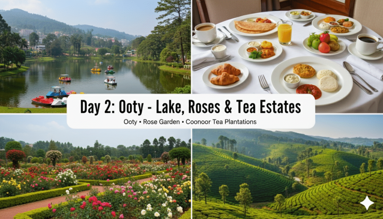 - Morning: Visit the Ooty Lake and the Rose Garden.