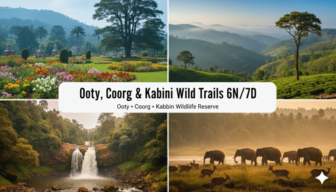 3-night Ooty, 2-night Coorg, and 1-night Kabini package with breakfast and dinner: